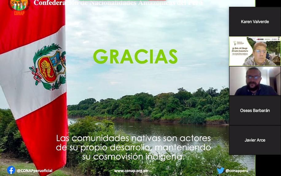 En ese evento participó el presidente de CONAP, Apu Oseas Barbarán y la lideresa del pueblo Ashaninka, Magaly Sebastián, miembro del consejo directivo nacional y el equipo técnico, donde expusieron diversos temas, entre ellos: La importancia de los Planes de Vida, elementos que se utilizan para tener una visión integral de las CCNN. Se resaltó la importancia de trabajar con productos forestales no maderables (PFNM), a la par de la necesidad de garantizar la seguridad jurídica de las CCNN para mejorar el acceso a los recursos y la gobernanza forestal, así como de fortalecer la institucionalidad forestal para el MFC, mediante la creación e implementación de las UTMFC.