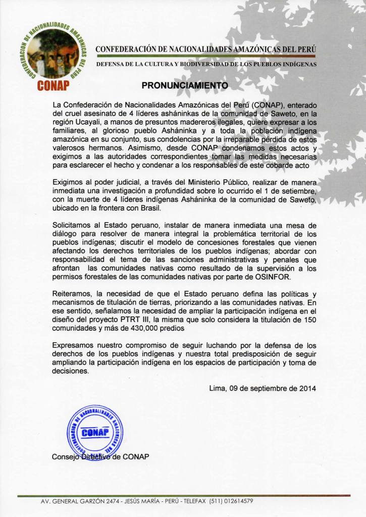 Organización nacional representativa de los Pueblos Indígenas Amazónicos del Perú, con 37 años de vida institucional, con más de 70 Federaciones bases y 900 comunidades nativas en siete regiones del Perú.