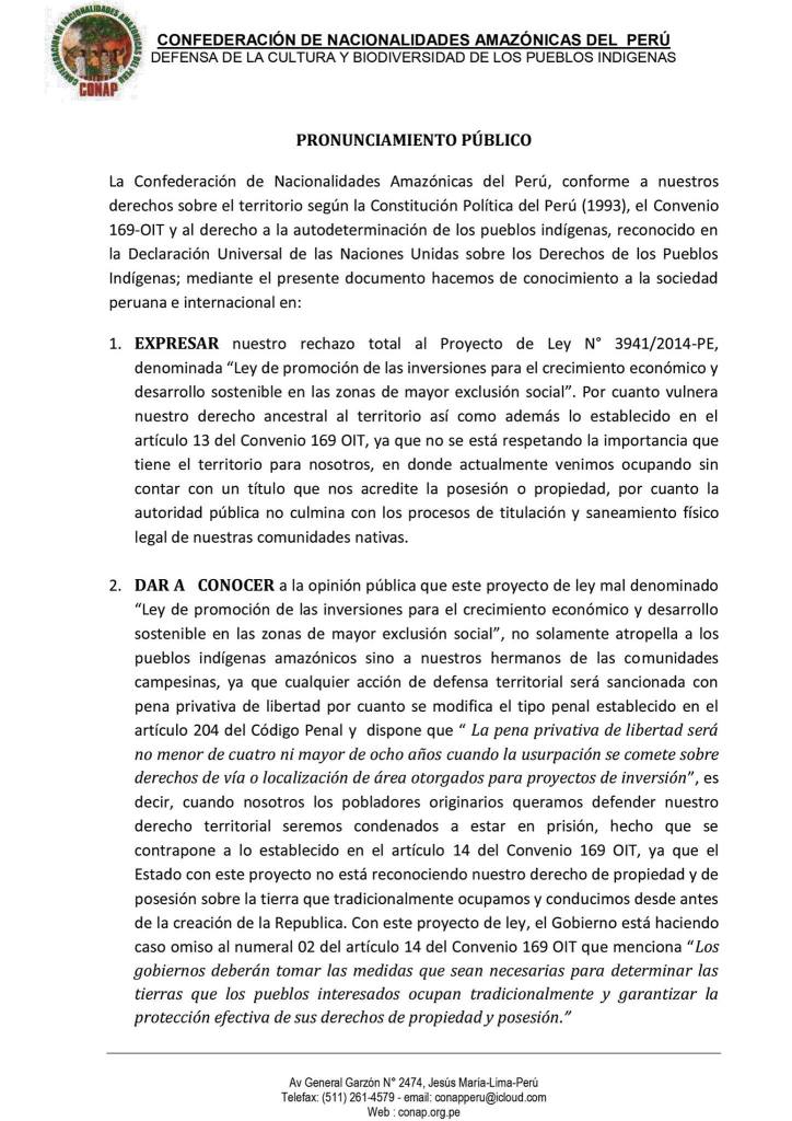 Organización nacional representativa de los Pueblos Indígenas Amazónicos del Perú, con 37 años de vida institucional, con más de 70 Federaciones bases y 900 comunidades nativas en siete regiones del Perú.